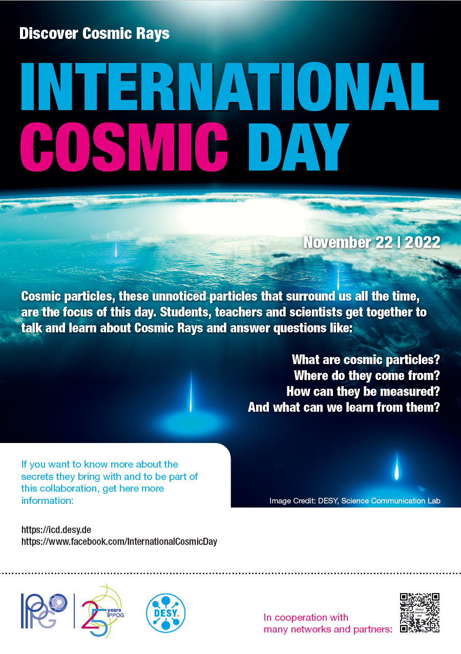 We are happy to announce the 11th International Cosmic Day. The ICD2022 will take place on November 22, 2022.